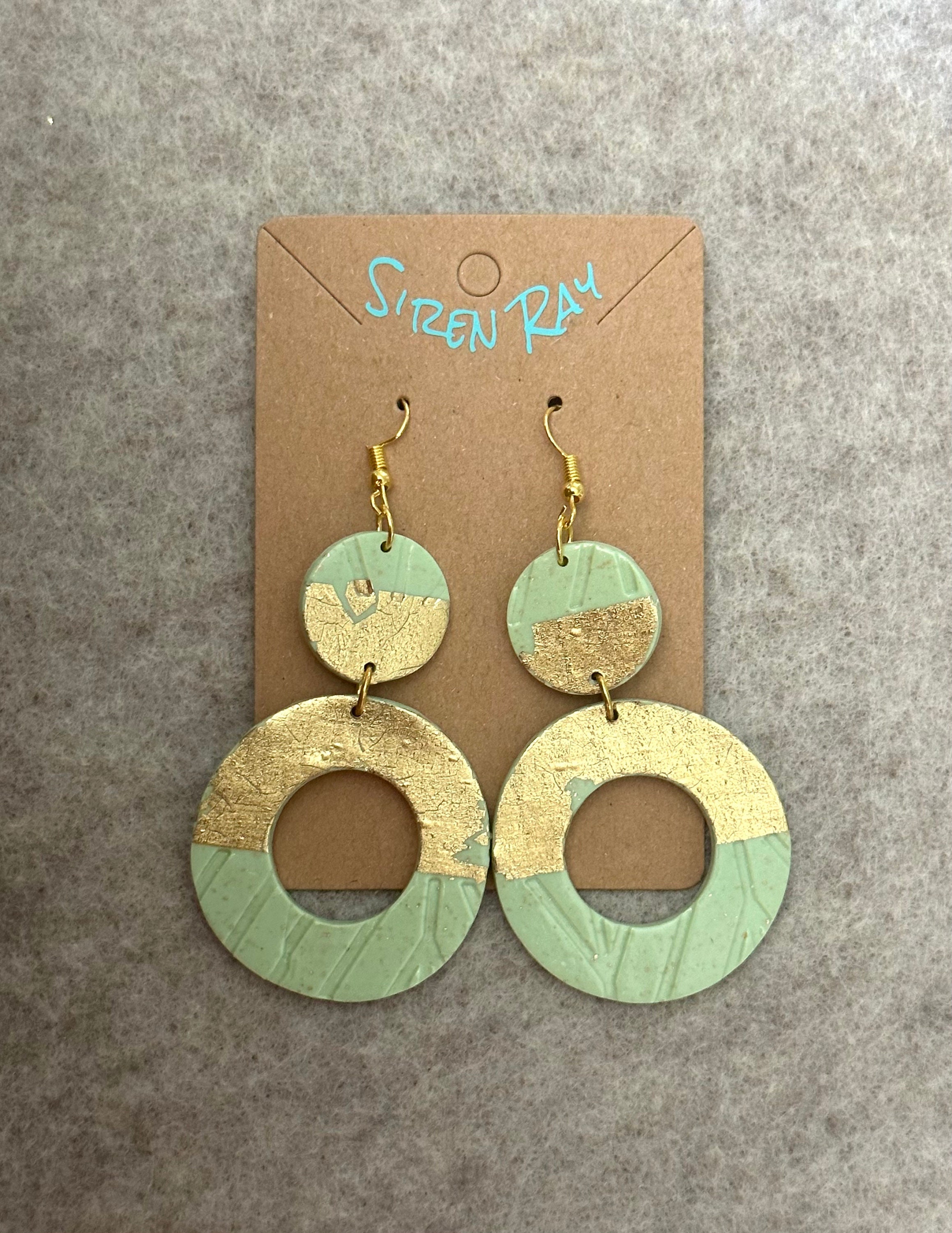 Discover the perfect blend of minimalist elegance and boho-chic with our Seafoam and Gold Foil Polymer Clay Hoops. Handcrafted with precision using high-quality materials, these hoops are sure to elevate your outfit for any occasion. The seafoam color adds a touch of tranquility while the gold foil accents bring out the boldness. Lightweight and comfortable, you can wear these all day without any hassle. Make a statement with these standout hoops and add a touch of sophistication to your look.