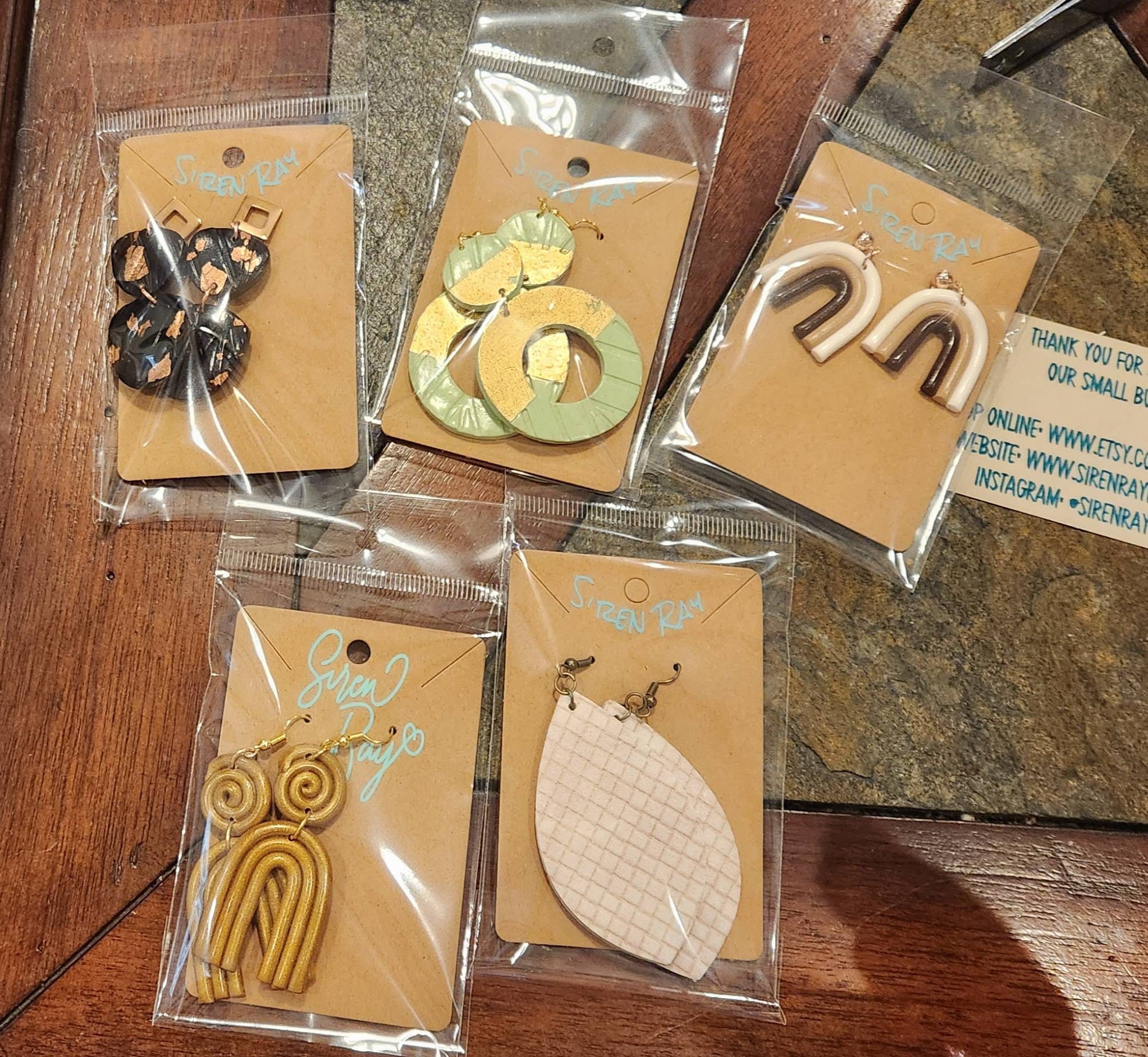 * Each of our earrings are handmade and may have slight differences in shape, size, etc… Polymer Clay is water resistant. However, please be aware that extended or excess exposure to water, rain, oils, or lotions may impact the durability of your piece. All of our jewelry is made with hypoallergenic metals.
