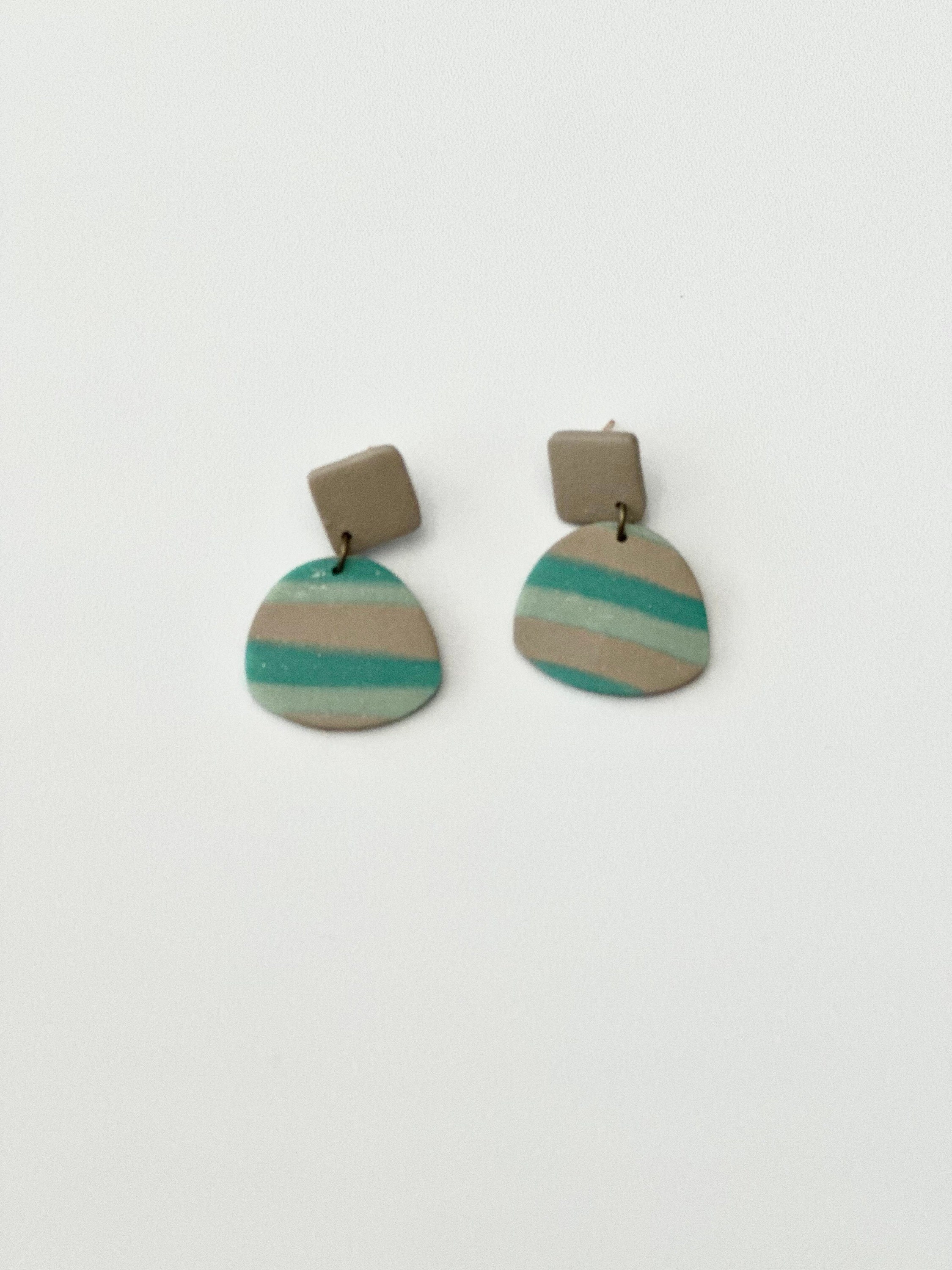 Let your style speak volumes with our Blue and Beige Striped Polymer Clay Earrings. These earrings are inspired by serene beach vibes, presenting a soothing color palette that mimics a tranquil seaside scene. The stripes create a captivating pattern where the calm blue merges with the earthy beige, forming a subtle yet charming style statement. Made from lightweight polymer clay, the earrings are as comfortable to wear as they are pleasing to the eye. It's like carrying a piece of the beach wherever you go!